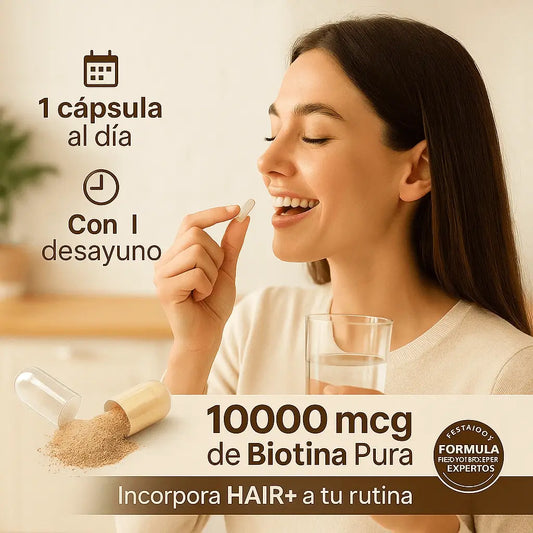 BiotinPro™ – Biotina Pura 10,000 mcg – Cabello Fuerte, Piel Saludable y Metabolismo Activo (90 cápsulas / 500 mg por servicio) CareMakersLab