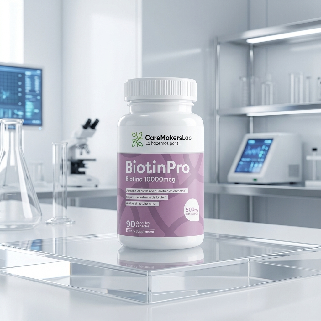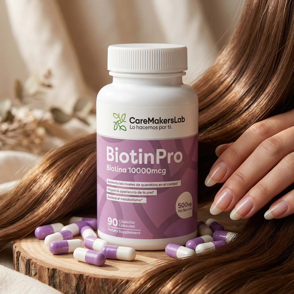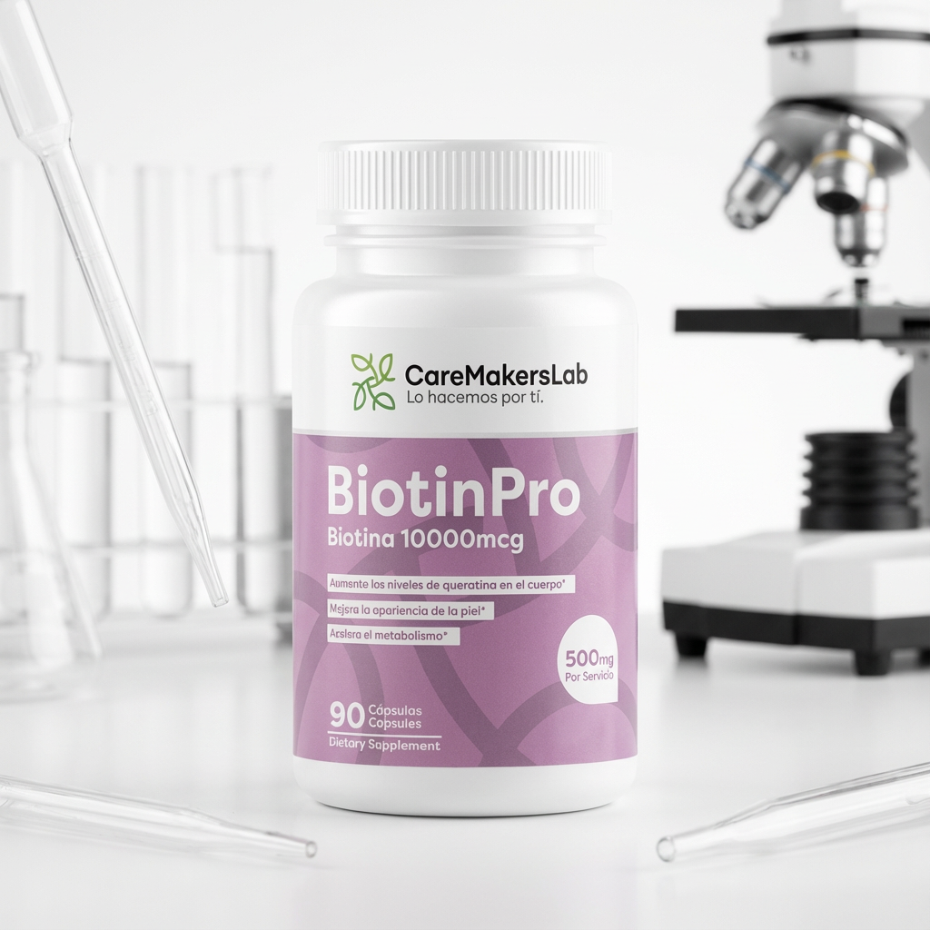 BiotinPro™ – Biotina Pura 10,000 mcg – Cabello Fuerte, Piel Saludable y Metabolismo Activo (90 cápsulas / 500 mg por servicio) CareMakersLab