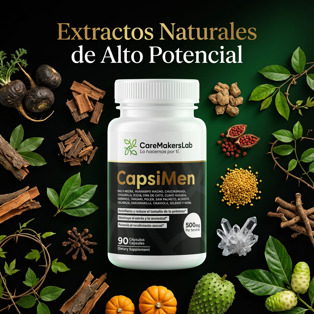 CapsiMen™ ha sido creado para acompañarte en cada etapa, con una fórmula avanzada de extractos naturales que trabajan en sinergia para mantener tu bienestar prostático, hormonal y sexual.