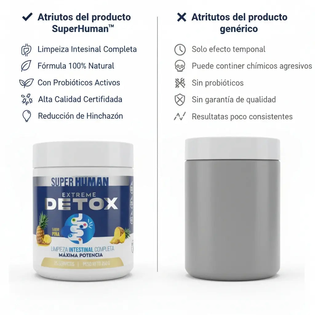 Extreme Detox Colon Cleanse – SuperHuman™ ha sido creado para ayudarte a depurar tu organismo con una fórmula avanzada de fibras, extractos vegetales y probióticos que trabajan en sinergia para limpiar tu colon y mejorar tu energía.