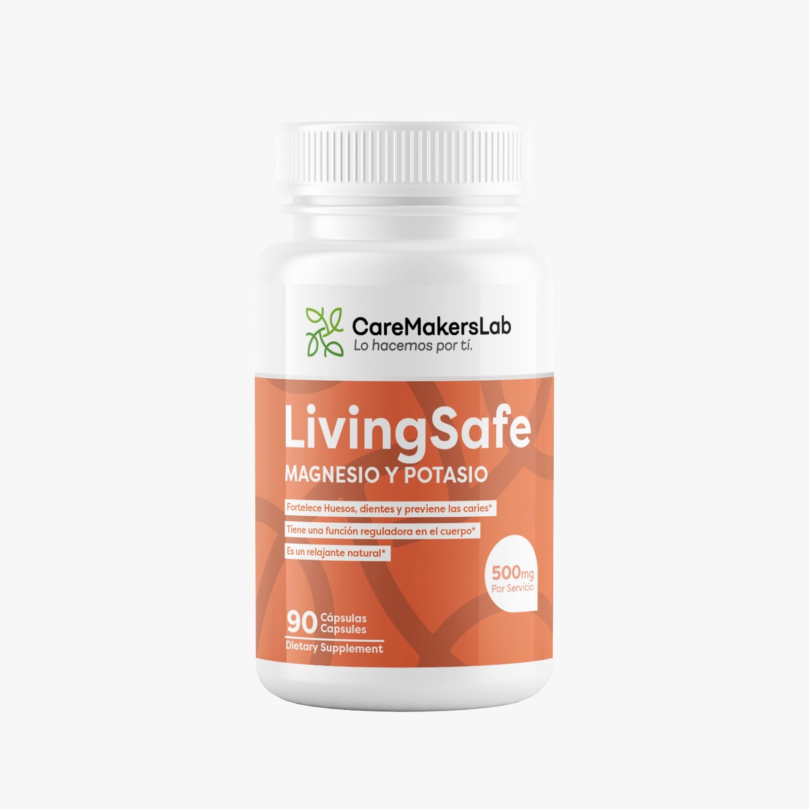 LivingSafe™ – Cápsulas de Magnesio y Potasio – Salud Ósea, Regulación Corporal y Relajación Natural (90 cápsulas / 500 mg por servicio) CareMakersLab